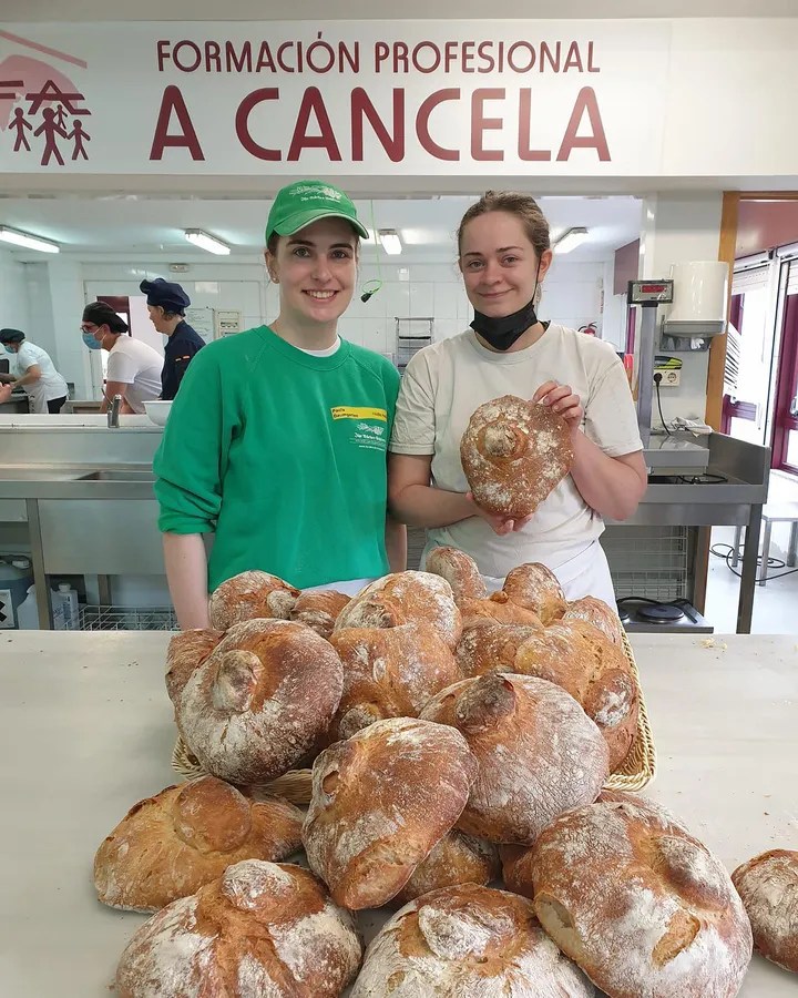 Nach zwei Jahren Pause war es nun wieder möglich: ein Auslandsaufenthalt für Auszubildende des Bäcker- und Konditorenhandwerks in Vigo. Bereits 2018 und 2019 konnten drei ehemalige Azubis von „Ihr Bäcker Schüren“ spanischen Bäckern nicht nur über die Schulter schauen, sondern auch selbst die galizischen Backwaren herstellen. Das Highlight damals nach ihrer Rückkehr: die Einführung des typisch nordspanischen Weißbrotes „Bio-Bonita de Santiago“. Beim jetzigen Austausch waren Paula Baumgarten (l.) und Marla Bräcklein (die inzwischen Gesellin ist) ebenso schwer begeistert von den traditionellen Rezepten und der spanischen Backkultur. Zwei Produkte standen dabei besonders im Fokus und hatten es den jungen Frauen angetan: das an eine Blume erinnernde Hefegebäck „Flores de Mantequilla“ und der feine, mit typischem Jakobskreuz dekorierte, Mandelkuchen „Tarta de Santiago“. Beide Produkte wurden in das Sortiment von „Ihr Bäcker Schüren“ erfolgreich aufgenommen. Der Aufenthalt in Vigo wird durch Erasmus+ Fördergelder im Projekt „SINDBAD“ der sequa gGmbH finanziert.